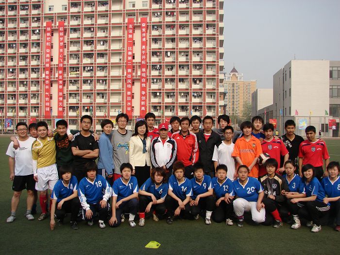 请国字号教练进校园传授技艺、与学生互动是我校第五届体育节的活动内容之一,也是最吸引同学们眼球的一项内容。训练课尚未正式开始,足球场边已经聚集了不少足球爱好者,大家兴高采烈,争相目睹女足主教练的风采。